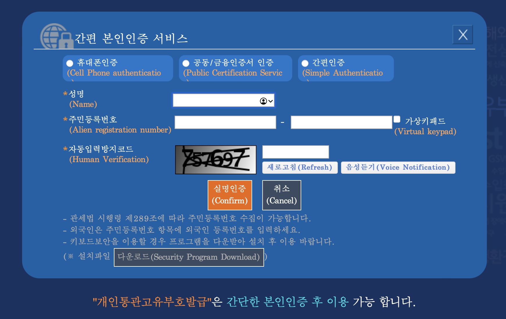 개인통관 고유부호는 관세청 전자통관시스템인 유니패스에서 재발급받으실 수 있습니다. 먼저 아래에서 유니패스로 접속하시면 됩니다.