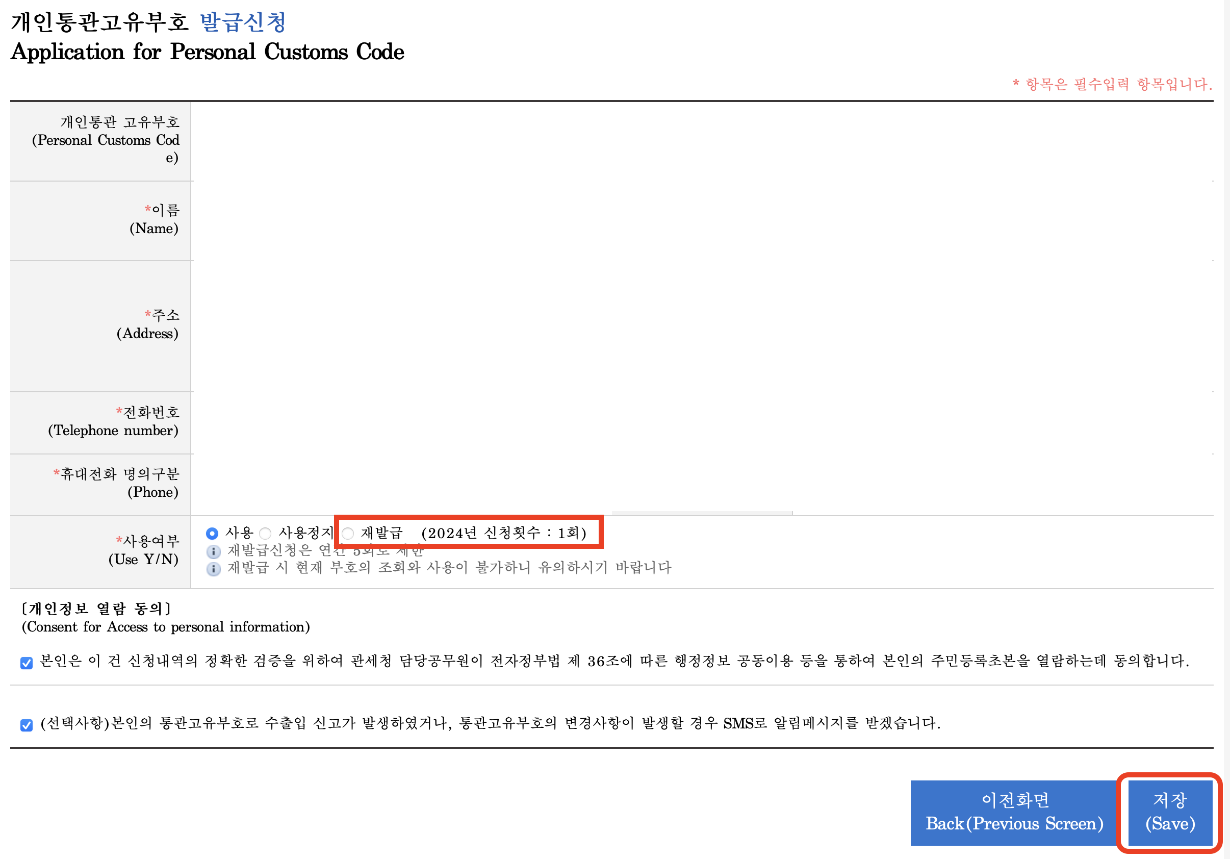 개인통관 고유부호 재발급 방법